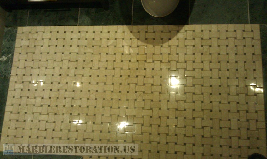 Needless to say that the bathroom floor just changed after polishing, the stone got a second life. The polished look of marble adds a refined quality to any bathroom.