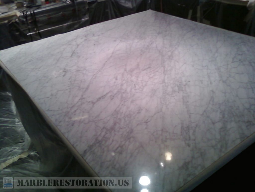 Description: Kitchen Island Top. White Carrara After Resurfacing