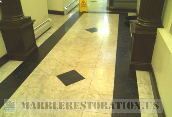 Description: Pale Marble Lobby Restoration in Harlem NY