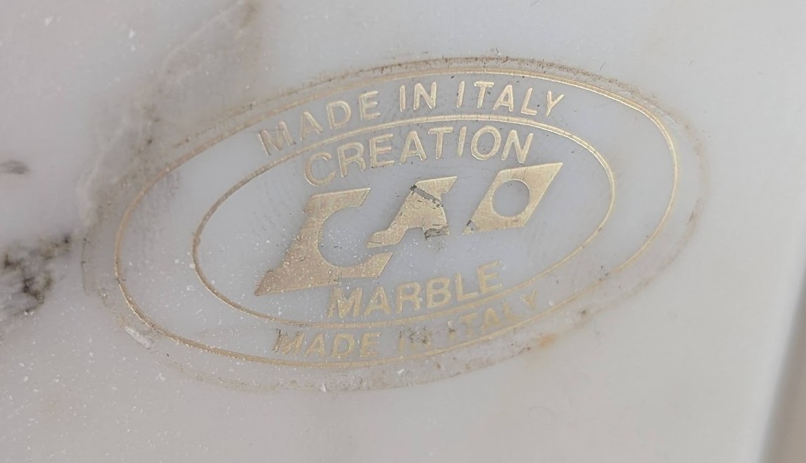 The marble table is branded under the name Creation CAO Marble, made in Italy.