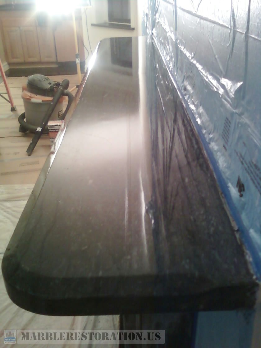 Beveled Top Slab on Fireplace. After Polishing and Tinging