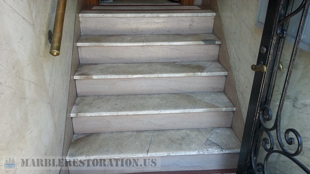 Unfortunately, there is no pre-treatment will be able to protect marble steps from heels or mechanical damage on 100%, therefore, it is necessary to think about restoration at the first appearance of cracks, stains, scuffs, and chips.